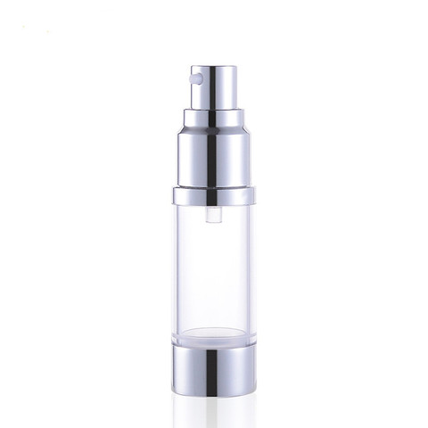 ขวดปั๊มสุญญากาศสีเงินเติมได้15มล. 30มล. 50มล.,ขวดปั๊มโลชั่นครีมไร้อากาศเปล่าพร้อมฝาสีเงิน